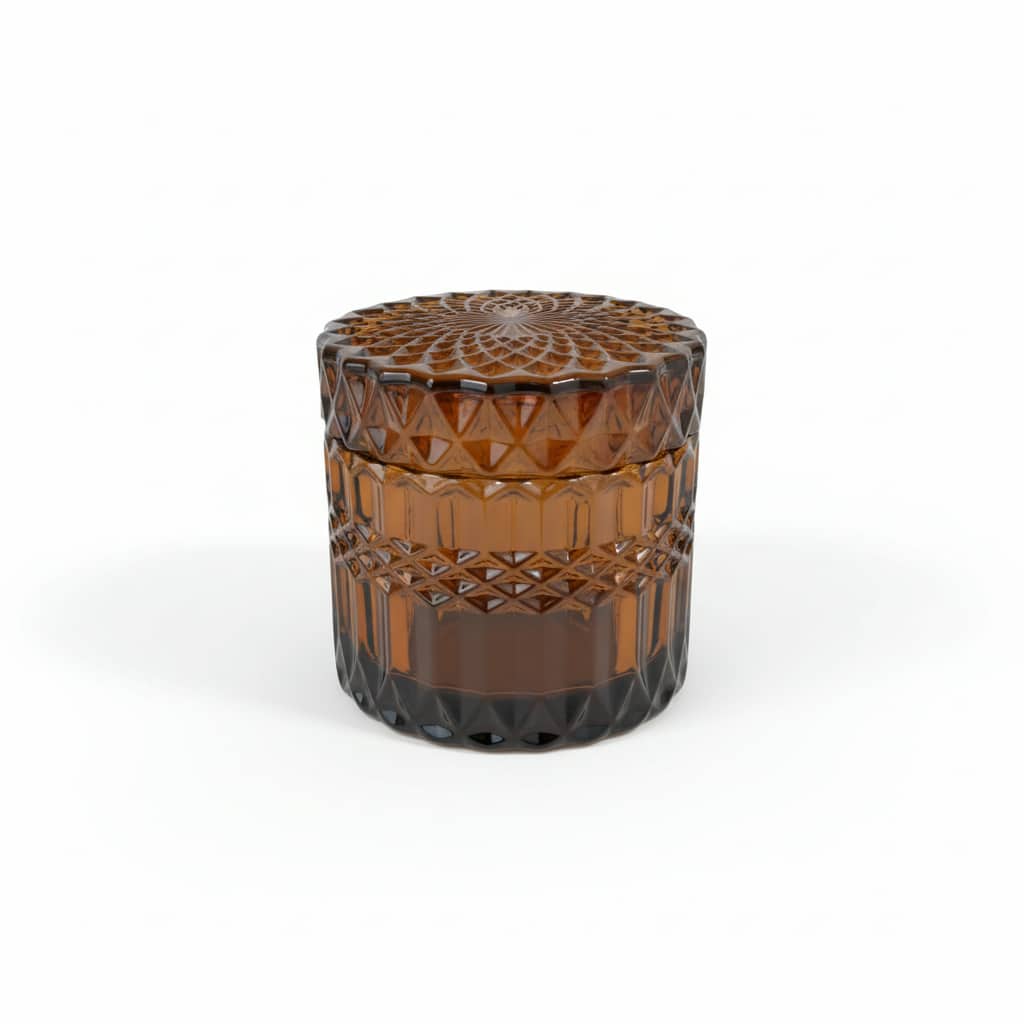 Viens no universālākajiem amber candle jars tirgū — siltā krāsa labi sader ar lielāko daļu aromātu, bet izteiksmīgais stikla raksts piešķir premium izskatu bez papildu piepūles. Uzticams, smags stikls nodrošina profesionālu rezultātu katru reizi.