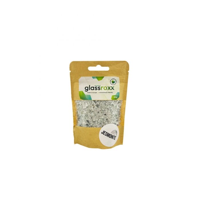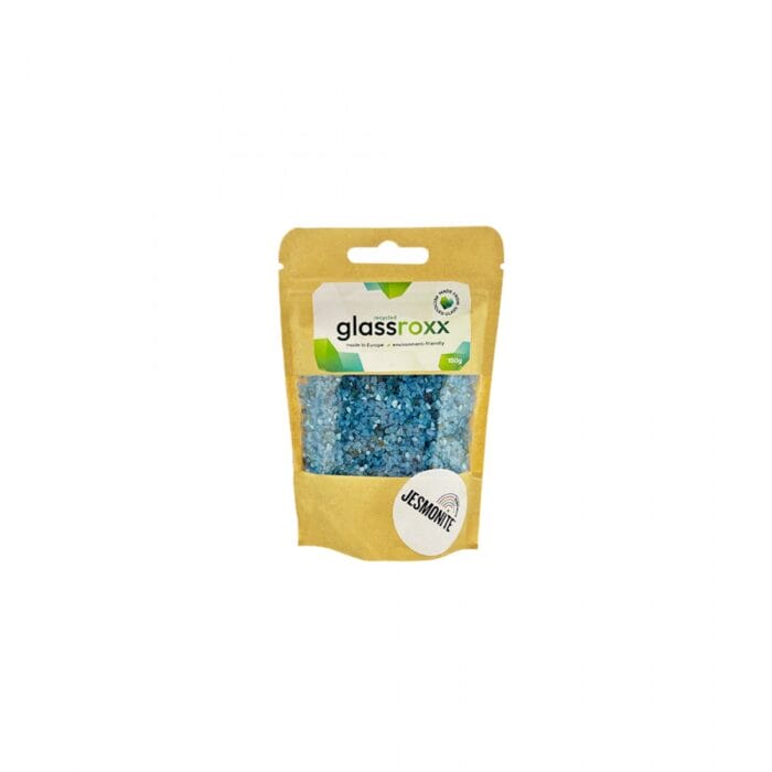 GlassRoxx ir ilgtspējīgas stikla granulas, izgatavotas no 100% pārstrādāta stikla un tonētas ar videi draudzīgiem, uz ūdens bāzes veidotiem pigmentiem. Tās ir īpaši radītas, lai lieliski saderētu ar Jesmonite materiāliem, ļaujot iegūt dabīgā akmens vai terrazzo stila efektus, saglabājot virsmas izturību un estētiku.