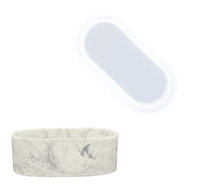 Augstas kvalitātes oriģinālā Jesmonite silikona forma, paredzēta ovālu trauciņu izgatavošanai. Tā izstrādāta īpaši darbam ar Jesmonite materiāliem, nodrošinot precīzu sajaukumu, gludu virsmu un profesionālu rezultātu. Izgatavota no izturīga, elastīga un ilgmūžīga silikona, kas ļauj viegli izliet un izņemt gatavo izstrādājumu bez bojājumiem.